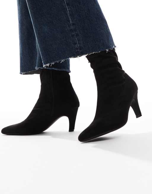 SEQWL – Starburst – Czarne buty na obcasie-kaczuszce z elastyczną cholewką z imitacji zamszu