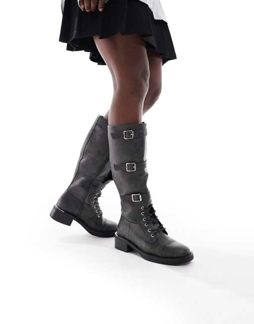 SEQWL – Twix – Sznurowane grafitowe kozaki do kolan z klamrami