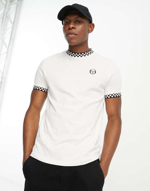 Sergio Tacchini – Felice – Kremowy T-shirt z lamówkami w kratkę