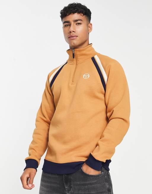 Sergio Tacchini – Jasnobrązowy sweter z zamkiem pod szyją i logo