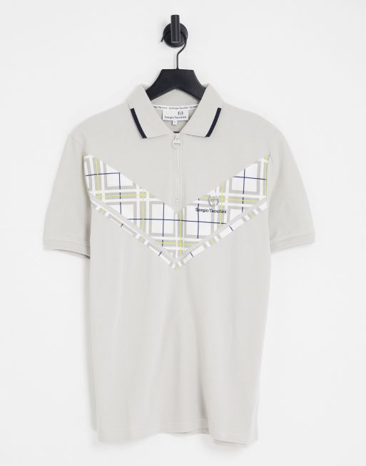 Sergio Tacchini – Szara koszulka polo ze wstawką w kratkę i zamkiem pod szyją