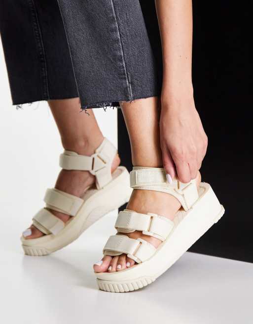 Shaka – Neo Bungy – Jasnobeżowe płaskie sandały z podwójnym paskiem