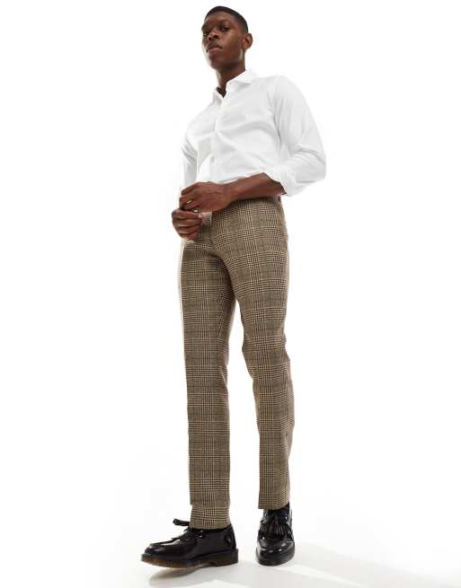 Shelby and Sons – Dopasowane spodnie tweedowe w brązową kratkę, część zestawu