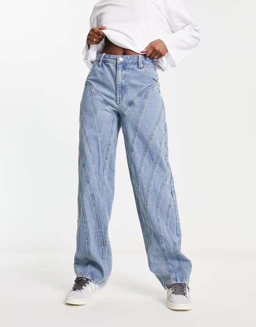 Signature 8 – Niebieskie jeansy z szerokimi nogawkami i szwami z przodu
