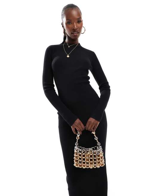 SIMMI – Czarna dzianinowa sukienka midi z wycięciem