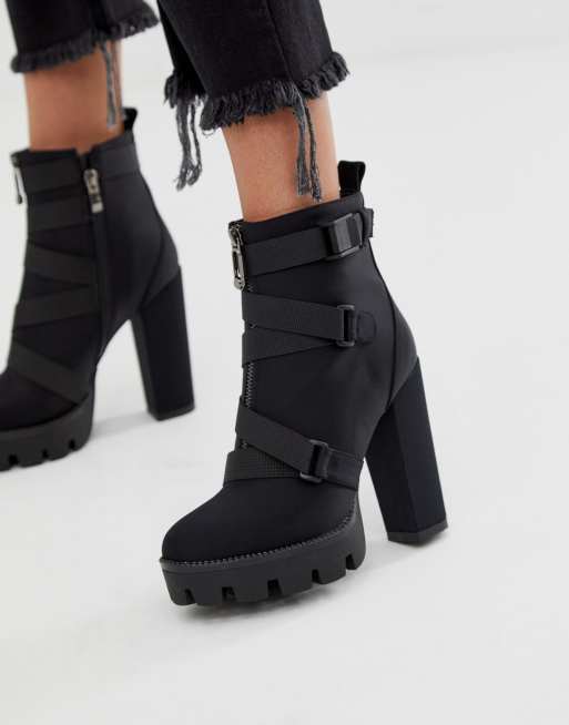 Czarne botki z lycry na słupku i grubej podeszwie od Simmi London – Jemma