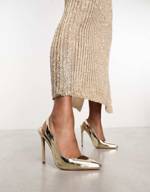 Simmi London – Caeley – Złote czółenka z paskiem za piętą