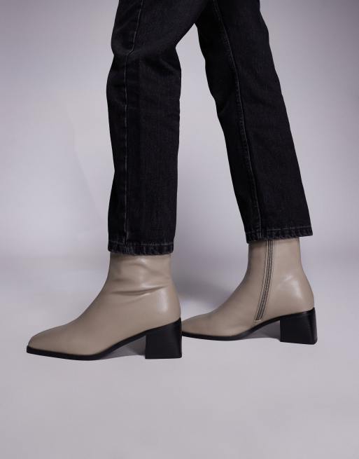 SIMMI London – Nimer – Szarobeżowe buty do kostki na średnim obcasie klockowym
