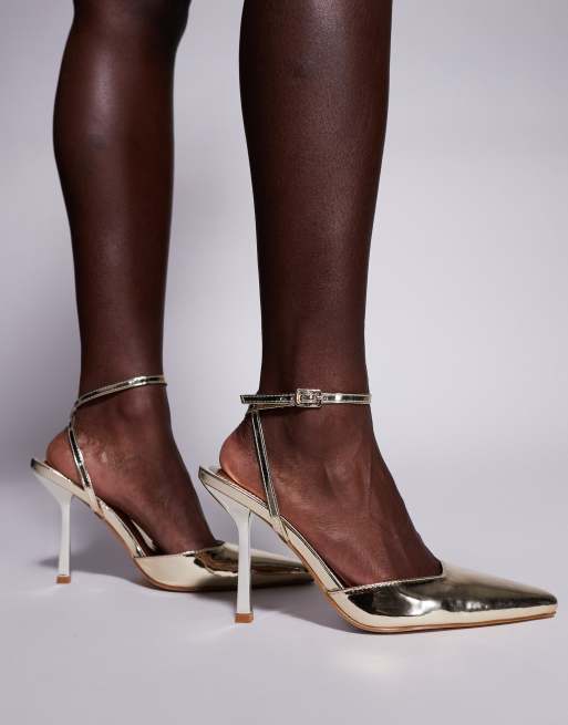 Simmi London Wide Fit – Bebbo – Złote czółenka z odkrytymi piętami