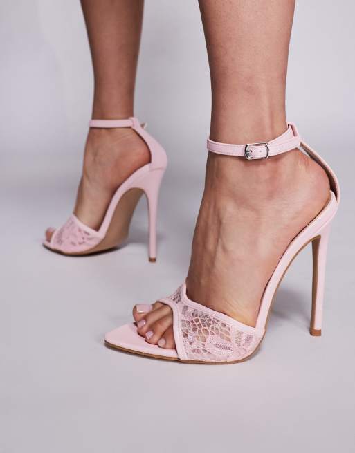 Simmi London Wide Fit – Eavie – Różowe koronkowe sandały na obcasie
