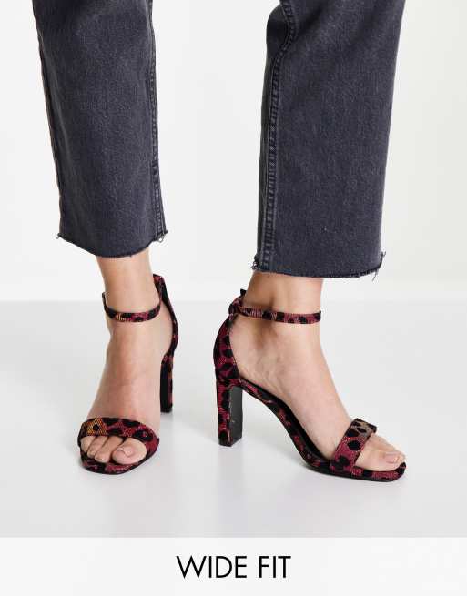 Simply Be Extra Wide Fit – Flo – Sandały na obcasie w panterkę