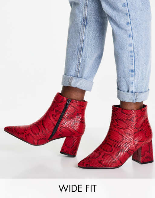 Simply Be Extra Wide Fit – Shauna – Czerwone botki do kostki na obcasie w wężowy wzór