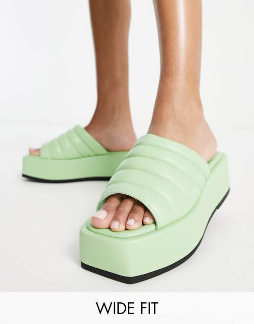 Simply Be Wide Fit – Zielone pikowane sandały na płaskiej platformie