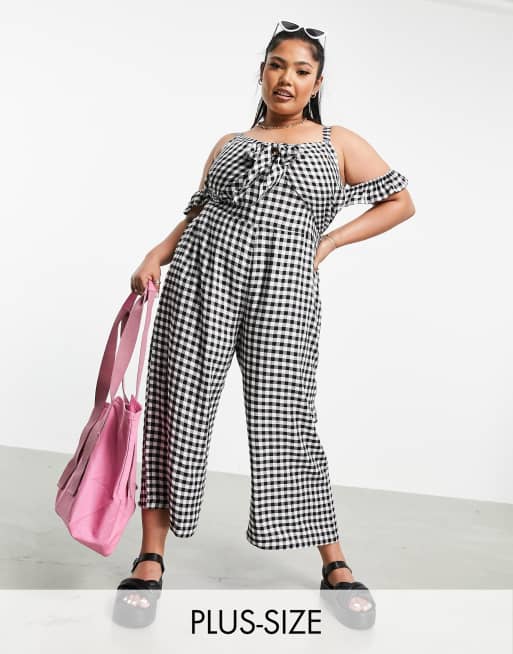 Simply Be – Czarny kombinezon z odsłoniętymi ramionami w kratkę vichy