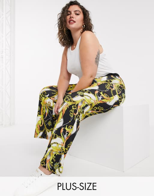 Simply Be – Spodnie z rozszerzanymi nogawkami z nadrukiem w łańcuchy