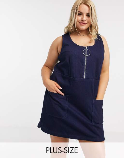 Simply Be – Sukienka o kroju ogrodniczek z zamkiem pod szyją z ozdobnym kółkiem