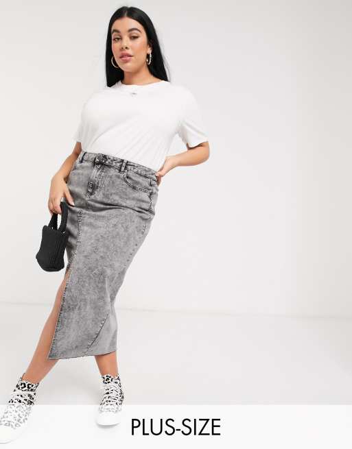 Simply Be – Szara jeansowa spódnica midi z efektem sprania acid wash