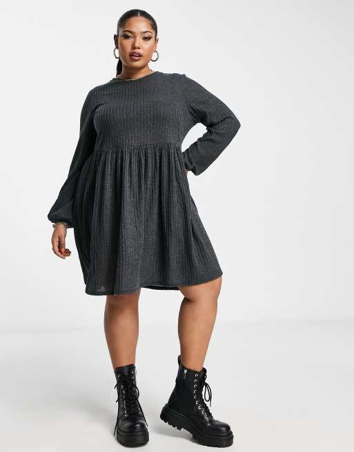 Simply Be – Szara prążkowana sukienka mini o luźnym kroju