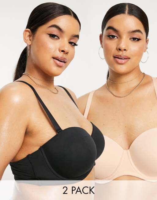 Simply Be – Zestaw 2 biustonoszy bez fiszbin w kolorach czarnym i jasnoróżowym