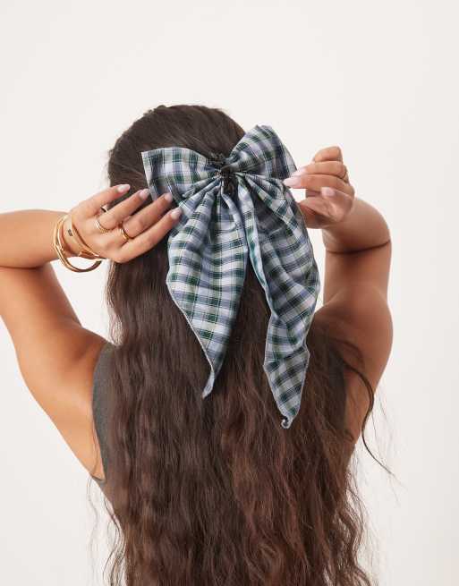 Dream Sister Jane – Spinka do włosów z kokardką w niebiesko-zieloną kratkę