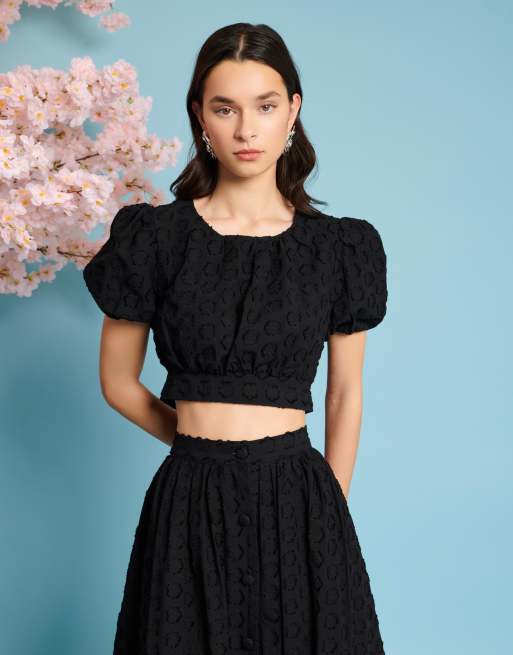 Sister Jane – Czarny krótki top żakardowy z bufkami, część zestawu