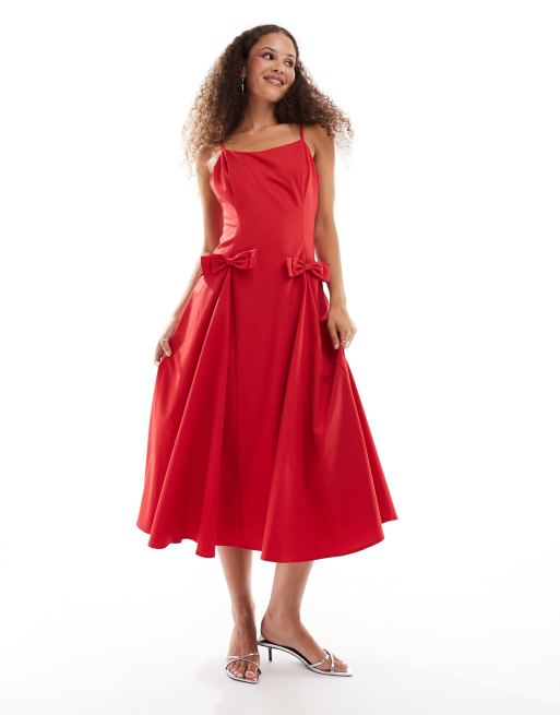 Sister Jane – Czerwona sukienka midaxi na ramiączkach z kokardkami