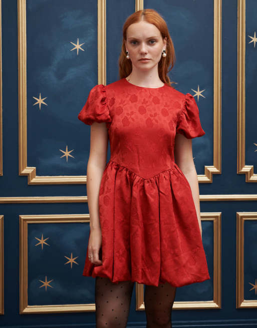 Sister Jane – Czerwona żakardowa sukienka mini z obniżonym dołem
