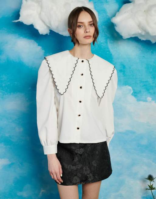 Sister Jane – Koszula oversize w kolorze kości słoniowej z kołnierzem z kontrastowym szwem