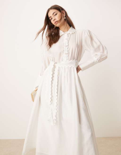 Sister Jane – Perłowobiała sukienka koszulowa midi z ozdobnymi guzikami