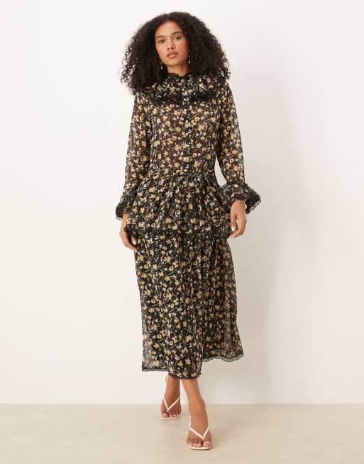 Sister Jane – Windswept – Czarna szyfonowa sukienka maxi w kwiatowy wzór