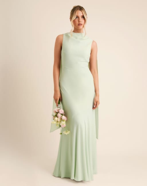Six Stories Bridesmaid – Miętowozielona sukienka maxi z zabudowanym drapowanym dekoltem z krepy