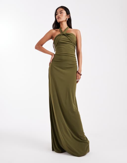 Six Stories Bridesmaids – Zielona sukienka maxi ze stretchem z dekoltem typu halter