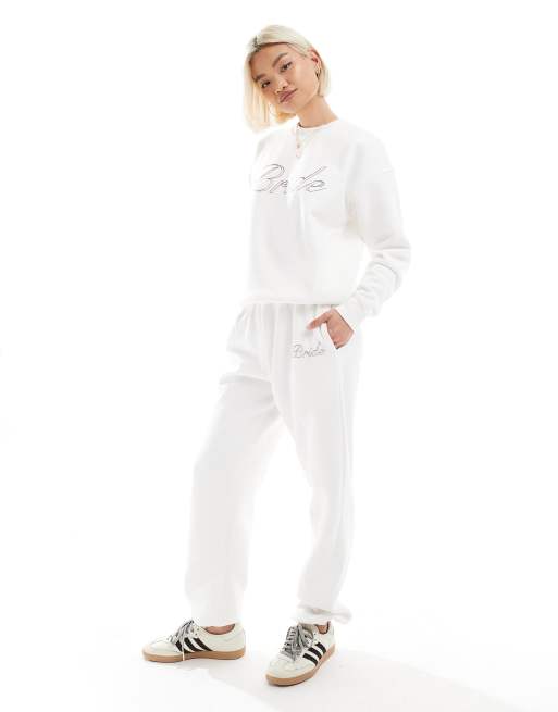 Six Stories – Joggersy w kolorze kości słoniowej z napisem „Bride”, część zestawu