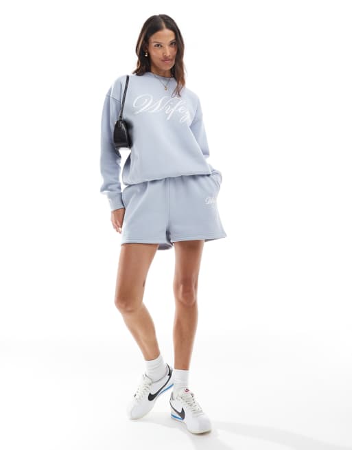 Six Stories – Niebieskie szorty z napisem „Wifey”, część zestawu