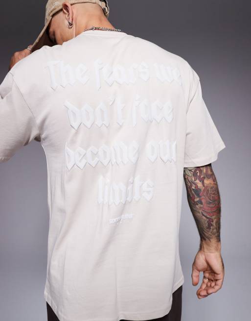 Sixth June – Beżowy T-shirt z nadrukiem cytatu na plecach