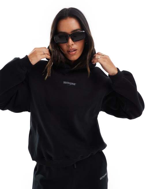Sixth June – Czarna bluza z kapturem z motywem na plecach, część zestawu