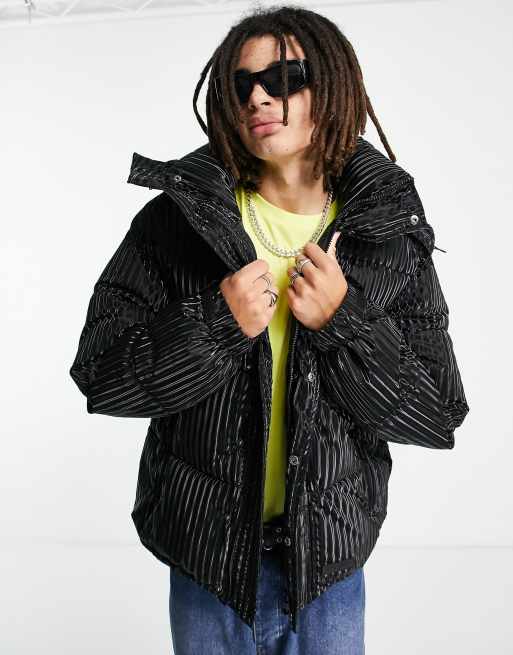 Sixth June – Czarna, prążkowana kurtka ocieplana oversize z opalizującym efektem