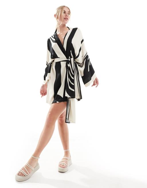 SNDYS – Sukienka z szerokimi rękawami i paskiem w czarno-białe paski