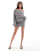SNDYS – Szary prążkowany zestaw dzianinowy: sweter z wywiniętym dekoltem bardot i spódnica mini