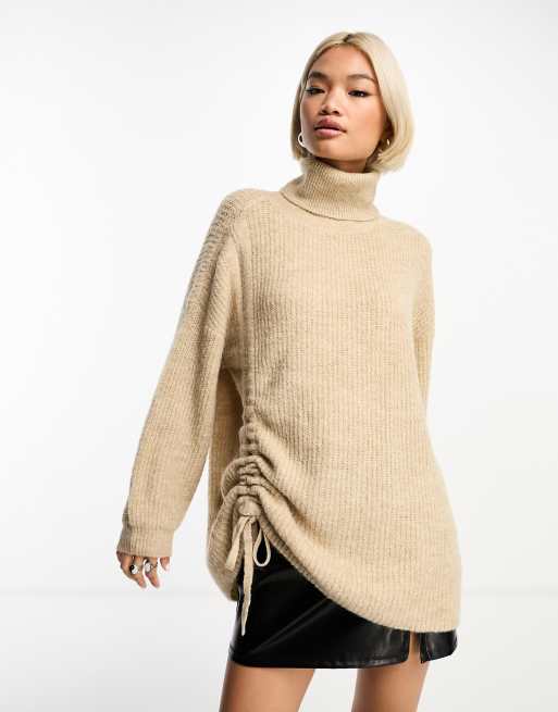 Something New X GORPECORE SQUAD – Piaskowy sweter z golfem i marszczeniem z boku
