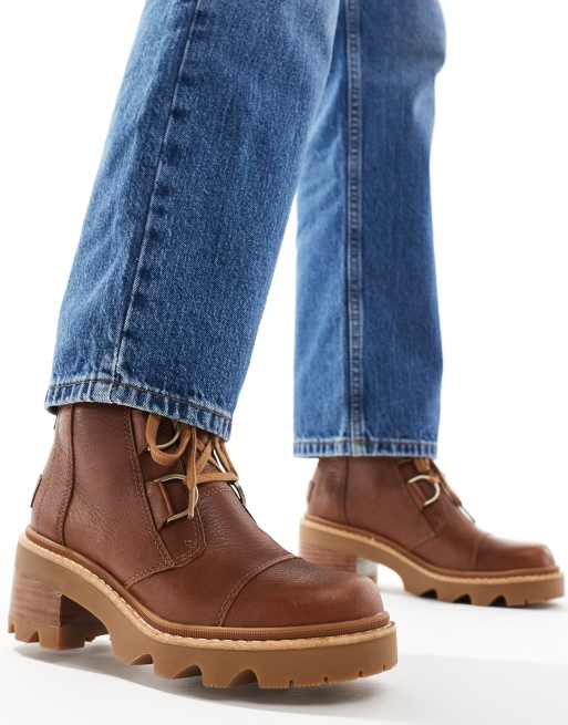 Sorel – Joan Now – Sznurowane skórzane botki na obcasie w kolorze jasnobrązowym i czarnym