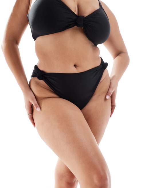 South Beach Curve – Czarny dół od bikini z podwyższonym stanem i węzłami po bokach