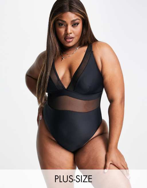 South Beach Curve – Exclusive – Czarny siateczkowy strój kąpielowy z głębokim dekoltem