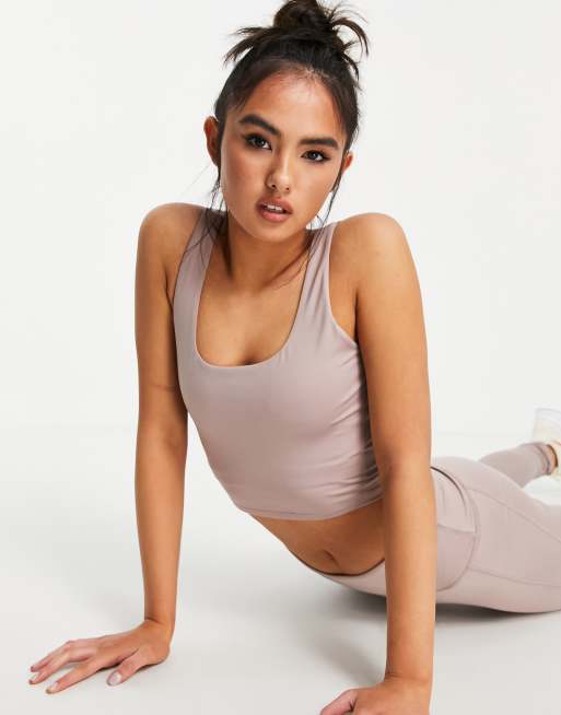 South Beach – Beżowy krótki top z dekoltem karo