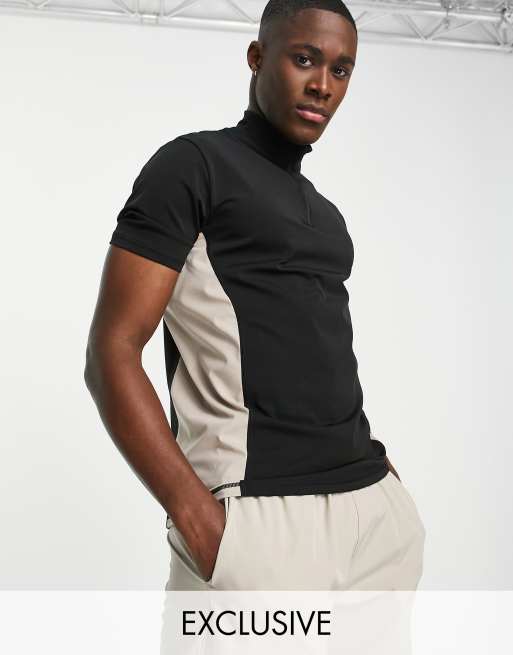 South Beach – Czarno-camelowy T-shirt z blokami kolorów
