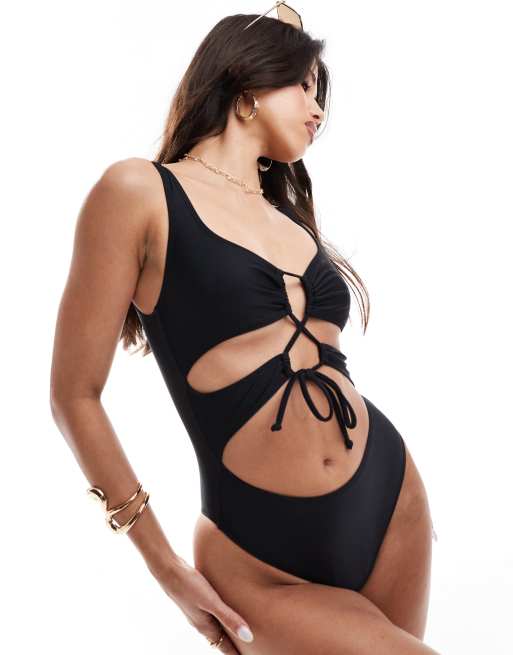 South Beach Essentials – Czarny strój kąpielowy z wycięciem i wiązaniem z przodu
