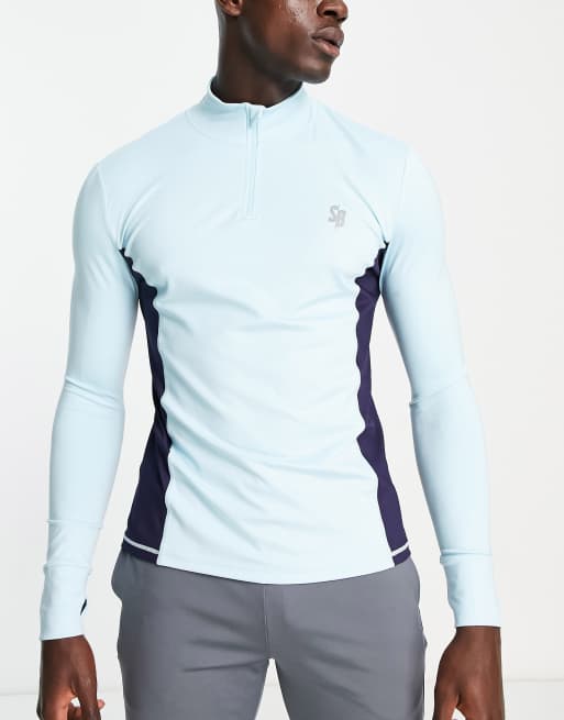 South Beach – Jasnoniebieski top z długimi rękawami i zamkiem pod szyją