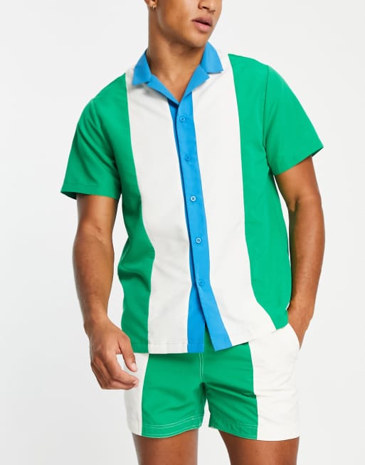 South Beach – Koszula plażowa w zielone, niebieskie i białe bloki kolorów