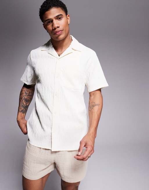 South Beach – Kremowa, fakturowana koszula plażowa z krótkimi rękawami