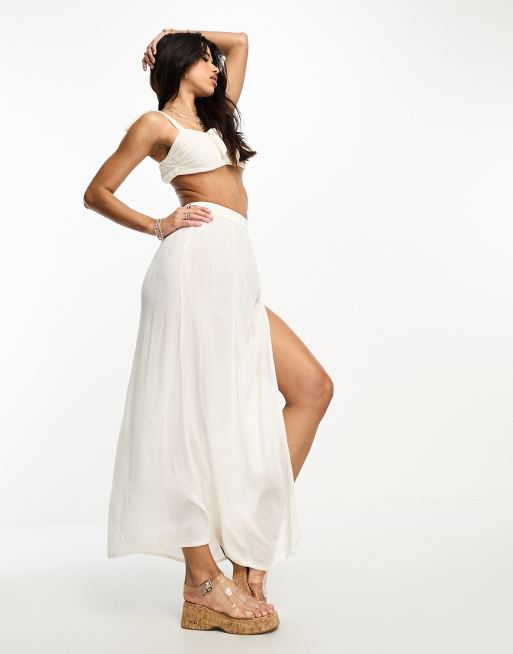 South Beach – Kremowy zestaw plażowy z wiązanym topem i spódnicą maxi